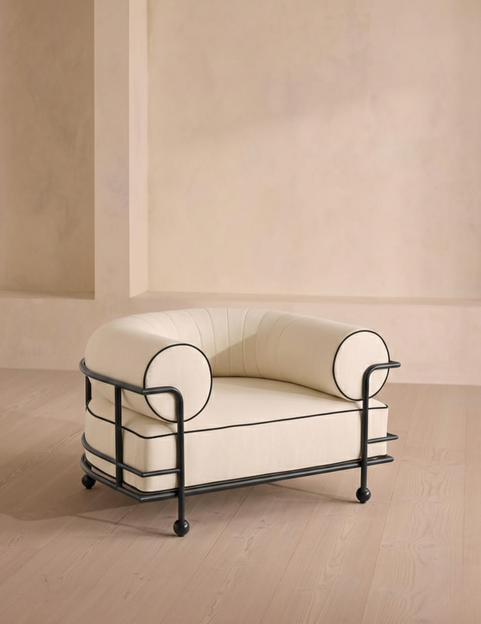 A modular sofa designed to move with your space. Inspired by the relaxed forms of the 1970s, it features extra-deep seating, plush bolster cushions, and a flexible system of modules that can be arranged and rearranged with ease. Upholstered in durable woven outdoor fabric, it delivers laid-back comfort, vintage character, and modern versatility—indoors or out.